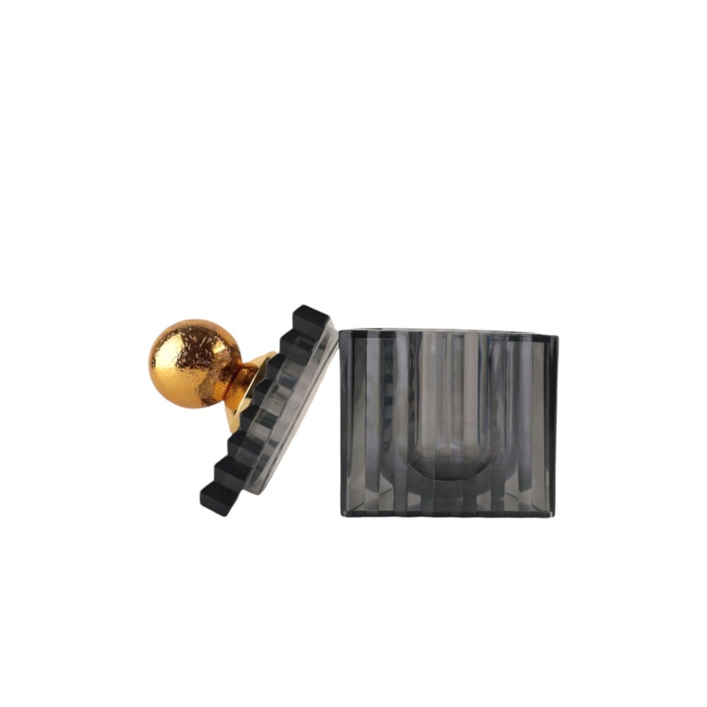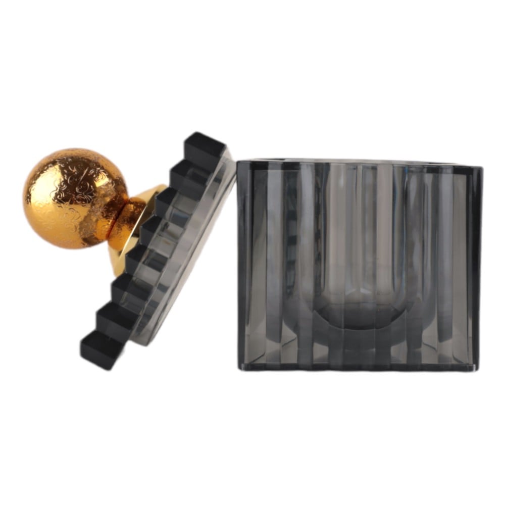 علبة عود أكريليك من سوليتير، لون أسود وذهبي، حجم وسط مقاس 9 سم