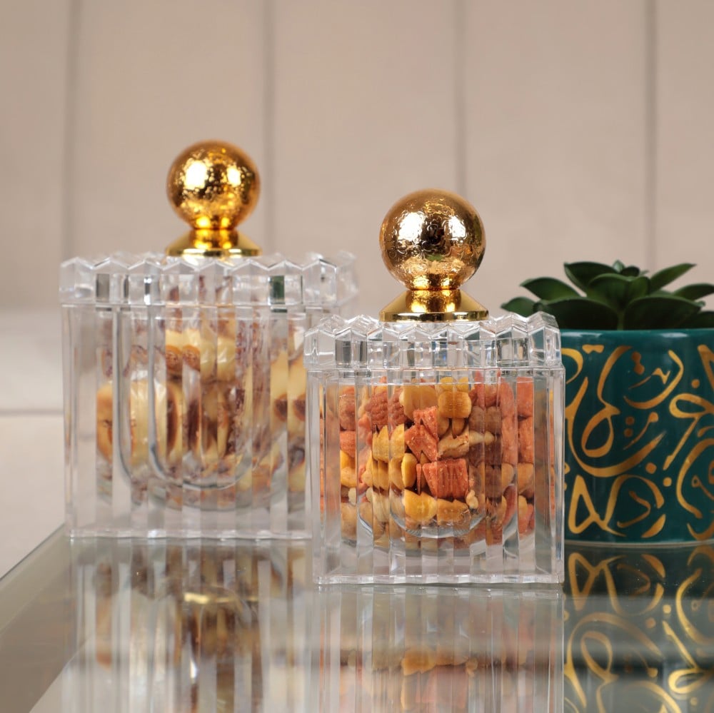 علبة عود أكريليك من سوليتير، لون شفاف وذهبي، حجم صغير مقاس 9 سم