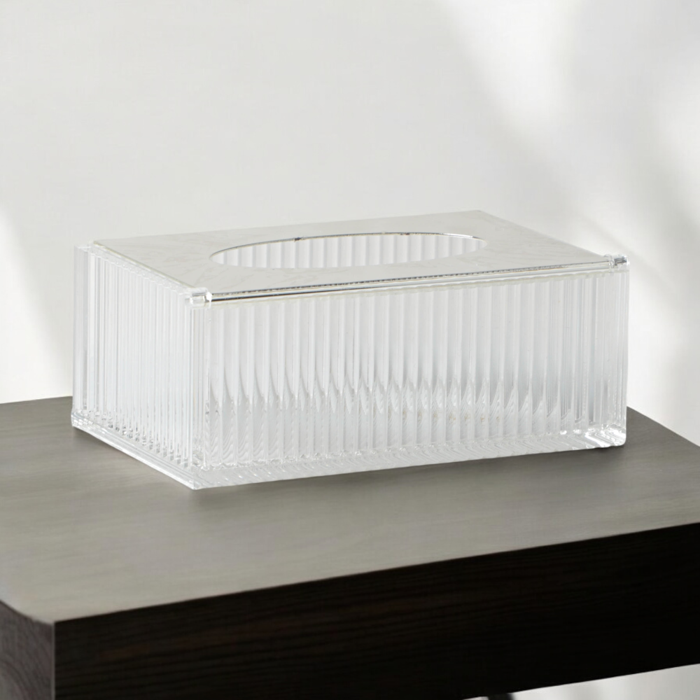 علب مناديل أكريليك من سوليتير، لون فضي، الطول 12 سم العرض 8 سم