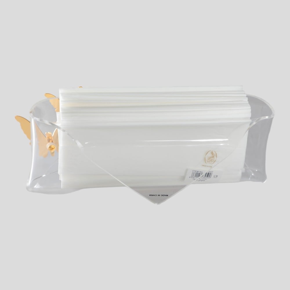 علبة مناديل الفراشة أكريليك من سوليتير، لون ذهبي, حجم كبير, الطول 27 سم, العرض 11 سم