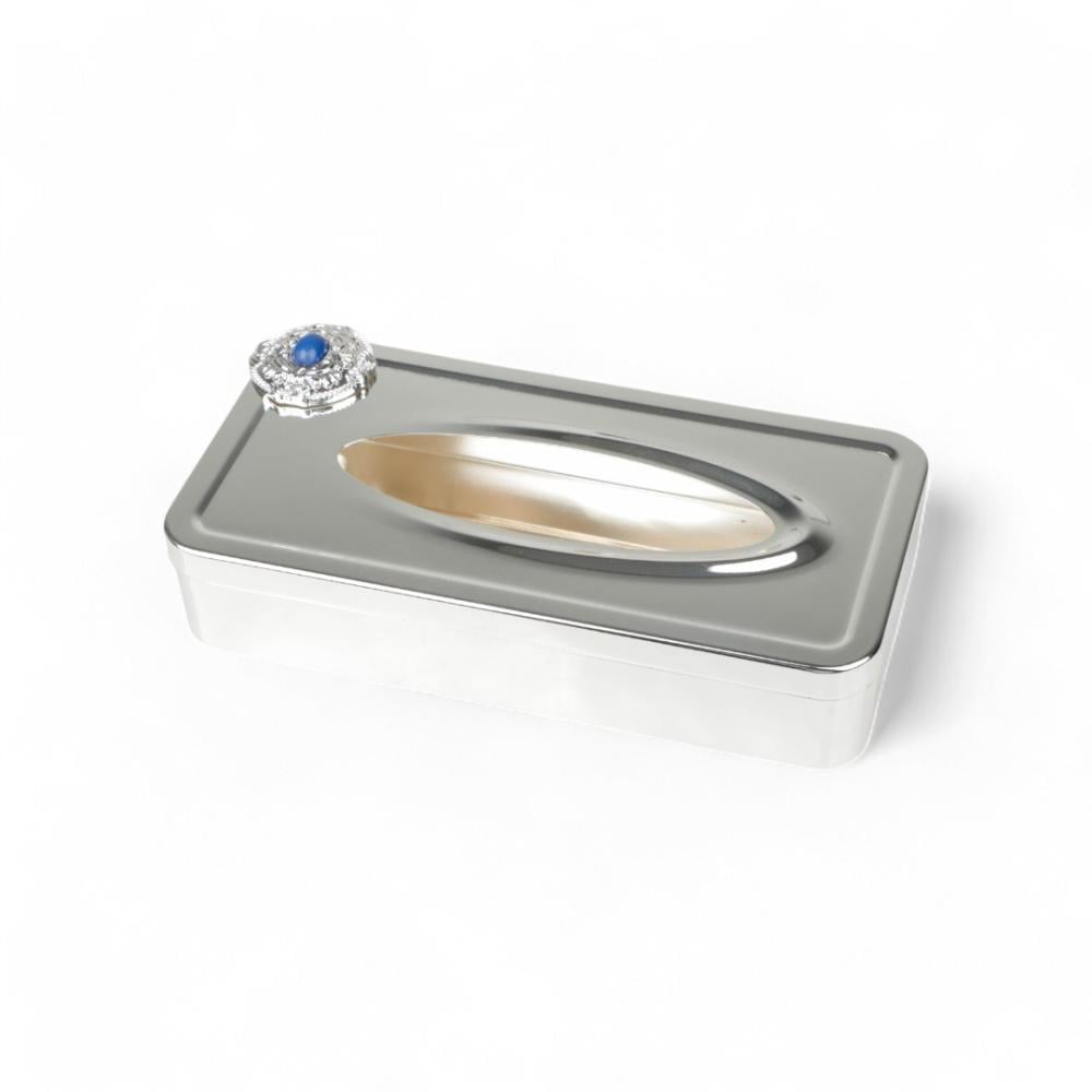 علبة مناديل كوين من سوليتير، اللون فضي & أزرق, الطول 26سم, العرض 13سم, الارتفاع 6سم
