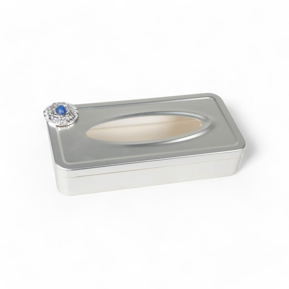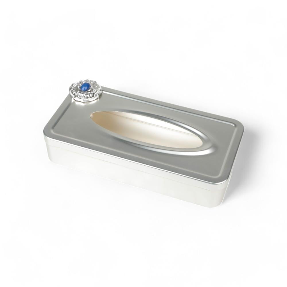 علبة مناديل كوين من سوليتير، اللون فضي مطفي & أزرق, الطول 26سم, العرض 13سم, الارتفاع 6سم