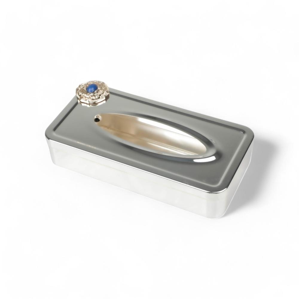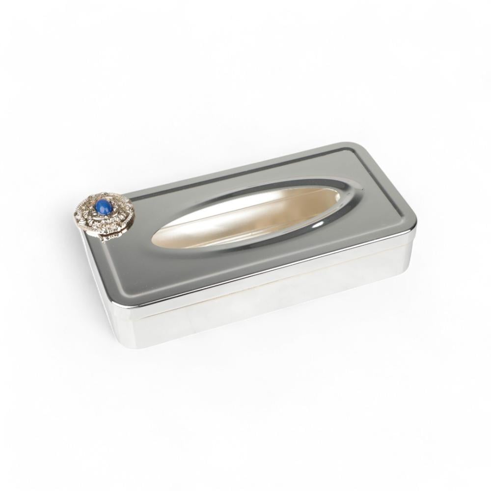 علبة مناديل كوين من سوليتير، اللون فضي ذهبي & أزرق, الطول 26سم, العرض 13سم, الارتفاع 6سم