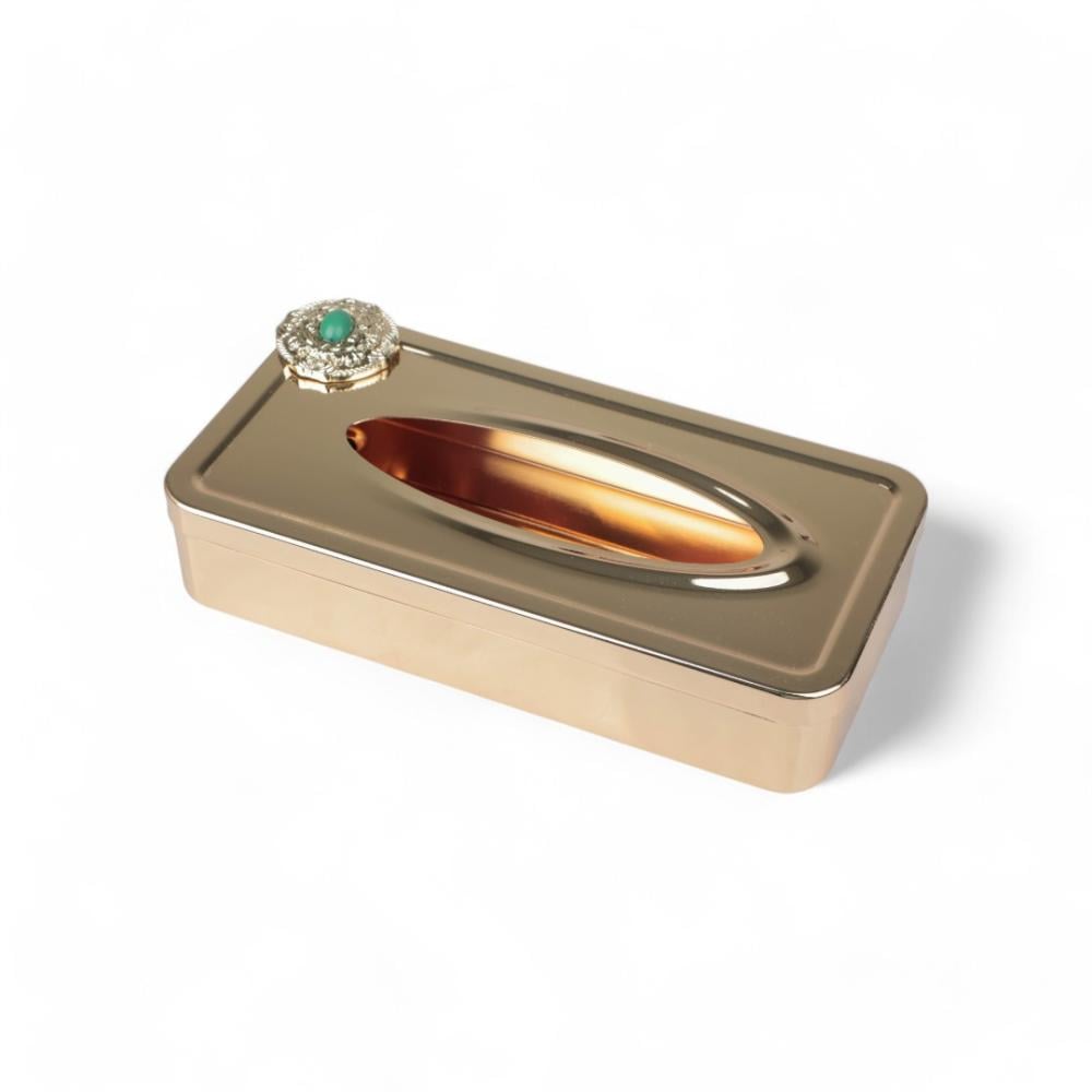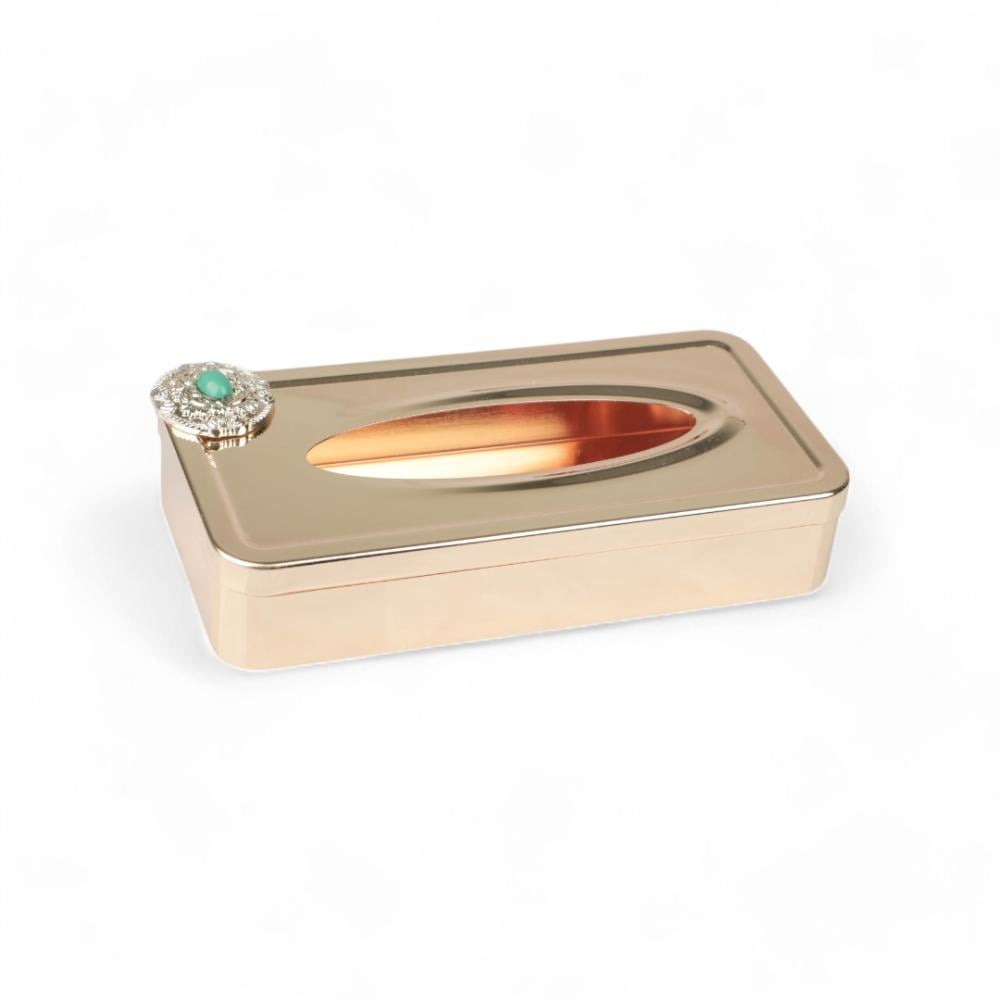 علبة مناديل كوين من سوليتير، اللون ذهبي & أخضر, الطول 26سم, العرض 13سم, الارتفاع 6سم