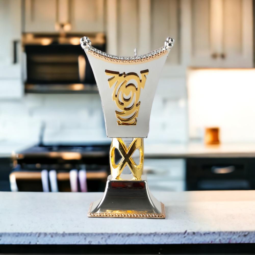 مبخرة بتصميم انيق شكل انفينتي بلون ذهبي، مصممة بحجم مثالي يمكنك من استخدامها في اي مكان