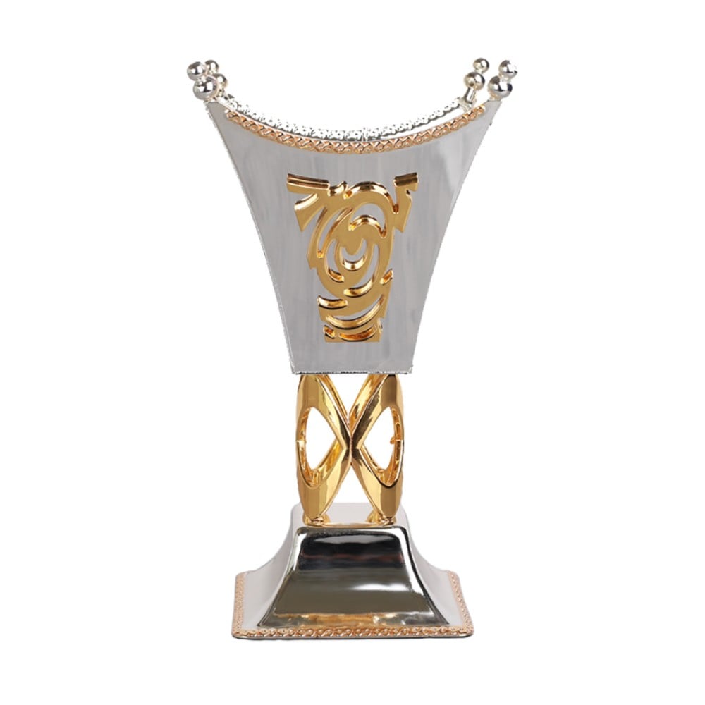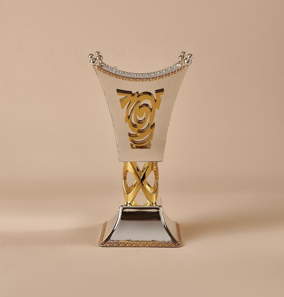 مبخرة بتصميم انيق شكل انفينتي بلون ذهبي، مصممة بحجم مثالي يمكنك من استخدامها في اي مكان