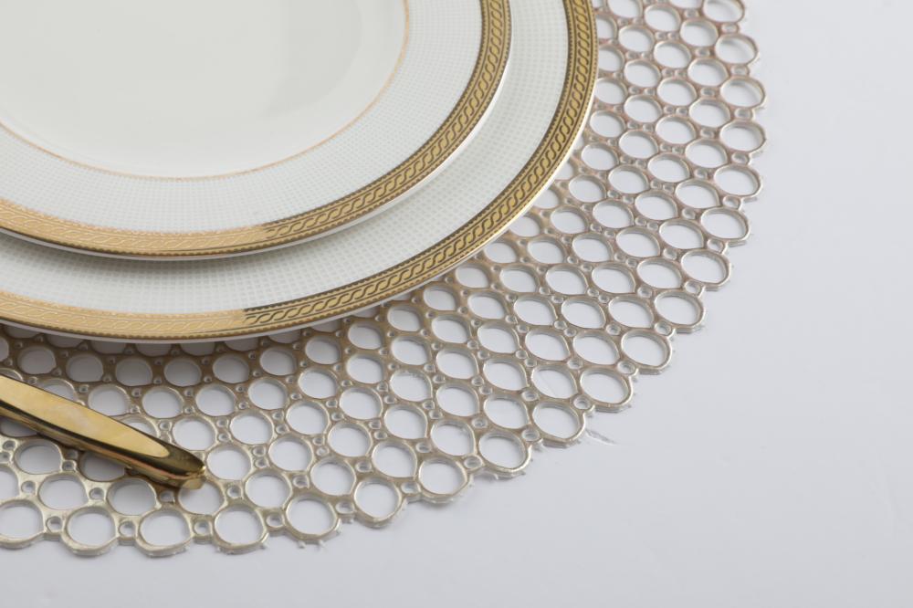 اجعلي تجمعاتك القادمة أكثر أناقة مع مفرش الطاولة الذهبي ذو التصميم المجوف يعتبر هذا المفرش خيارًا مثاليًا لإضافة لمسة فاخرة إلى طاولتك. مصنوع من البلاستيك عالي الجودة، يضمن هذا المفرش المتين متانة واستدامة. اجعلي كل لحظة تجمع تبدو استثنائية مع هذا المفرش الفريد وإليك مميزات السلعة :