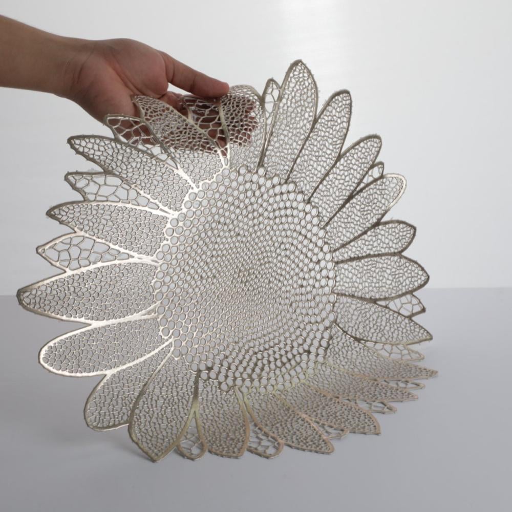 مفرش طاولة بنمط مجوف دائري الشكل لون ذهبي مقاس 40 سم