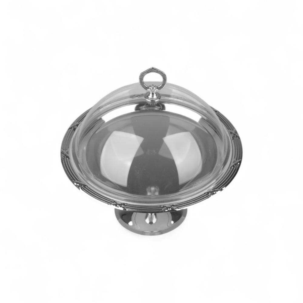 صحن كيك فوبي مع قاعدة بغطاء أكريليك من سوليتير، اللون: فضي، الحجم كبير، الشكل دائري، القطر: 35 سم