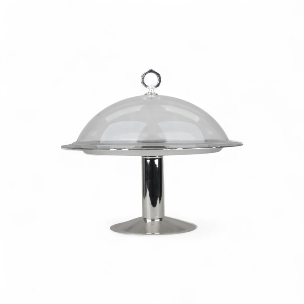 صحن كيك فوبي مع قاعدة بغطاء أكريليك من سوليتير، اللون فضي، الحجم صغير، الشكل دائري، القطر 24 سم