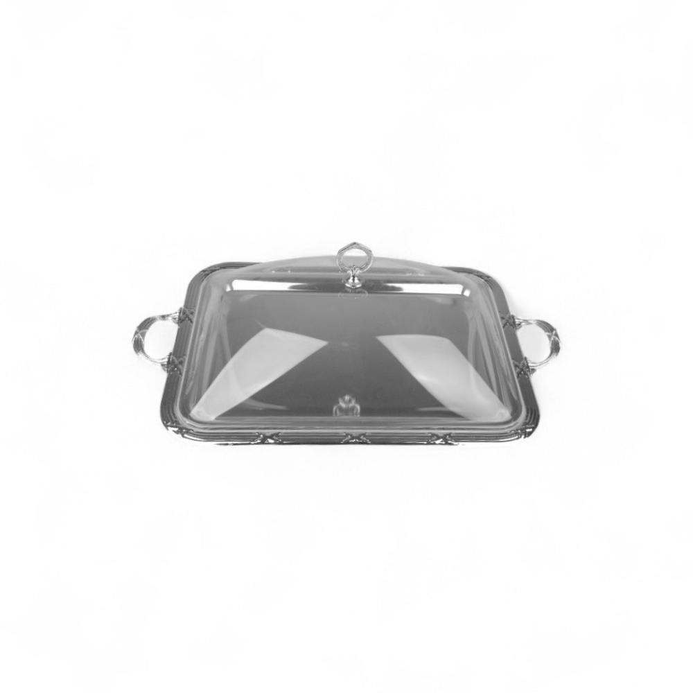 صينية كيك فوبي بغطاء أكريليك من سوليتير، اللون فضي، الحجم وسط، الشكل مستطيل