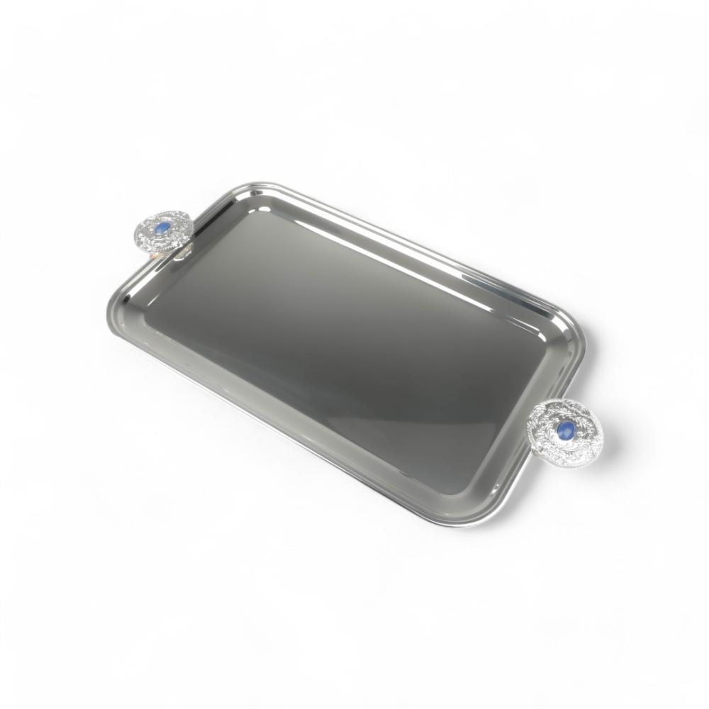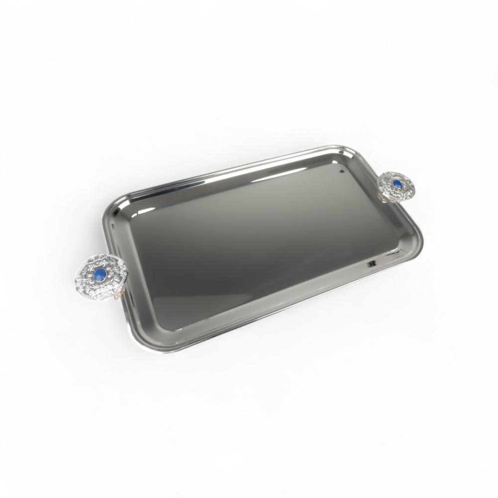 صينية تقديم كوين من سوليتير، لون فضي وأزرق، الطول 65سم العرض 32.5سم