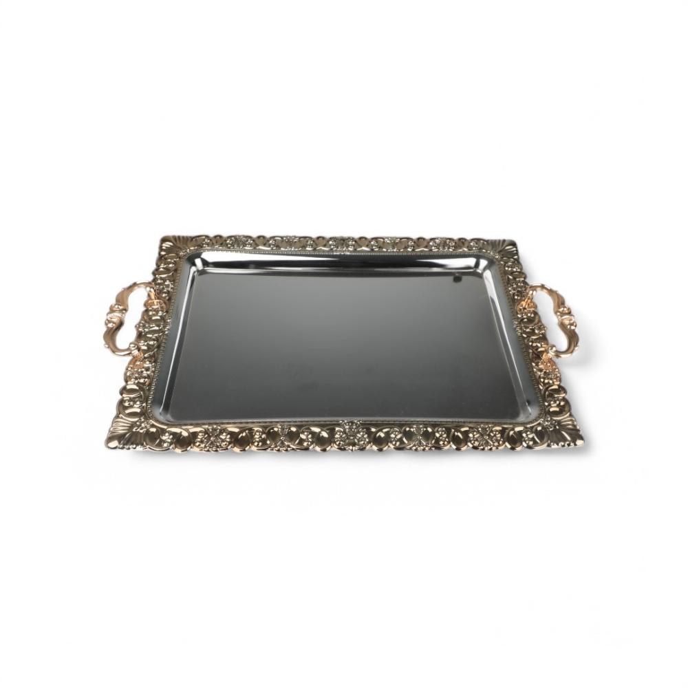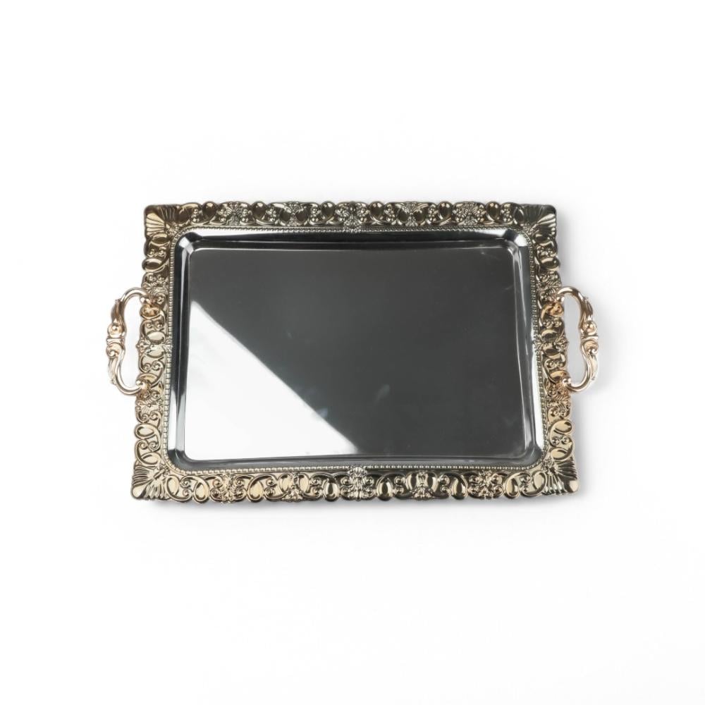صينية تقديم معدنية من سوليتير, لون فضي وذهبي, حجم كبير مستطيل