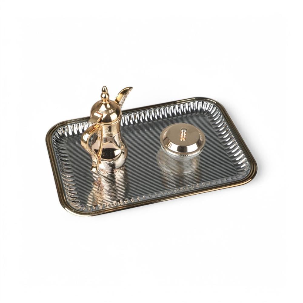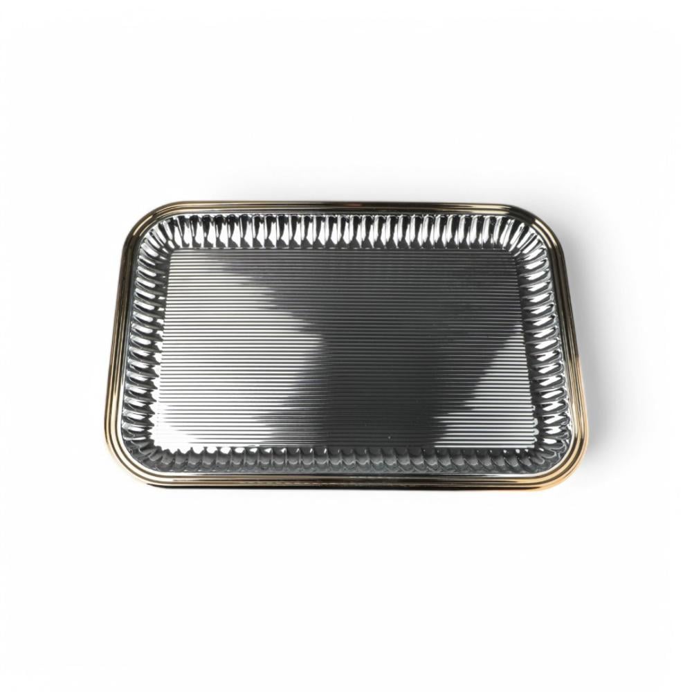 - صينية التقديم المعدنية من سوليتير تتميز بتصميمها الراقي والعصري، مما يجعلها إضافة مثالية لأي مناسبة، سواء كانت حفلة عائلية، أو تجمع رسمي، أو حتى للاستخدام اليومي.