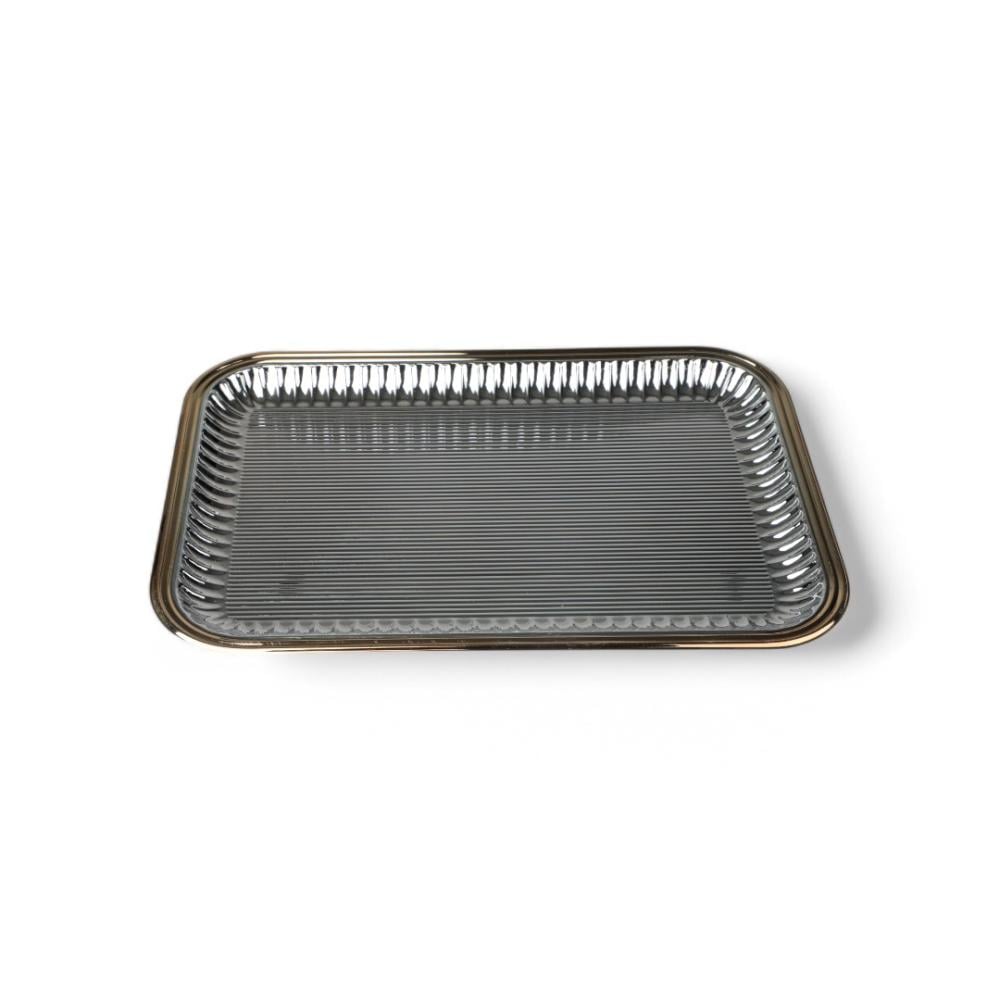 صينية تقديم من سوليتير، لون فضي وذهبي، حجم كبير مستطيل العرض 36سم الطول 53سم