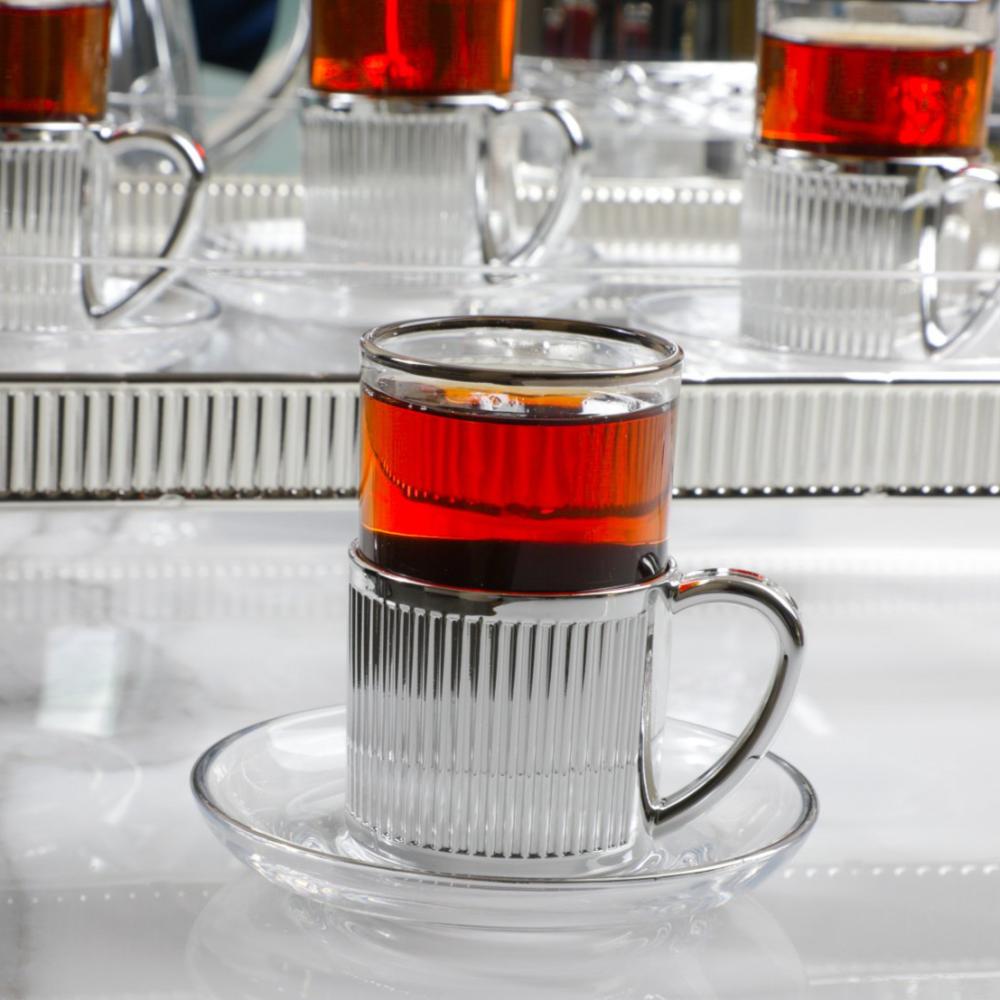 - تتضمن العبوة - مجموعة من 6 قطع من أكواب الشاي و 6 صحون