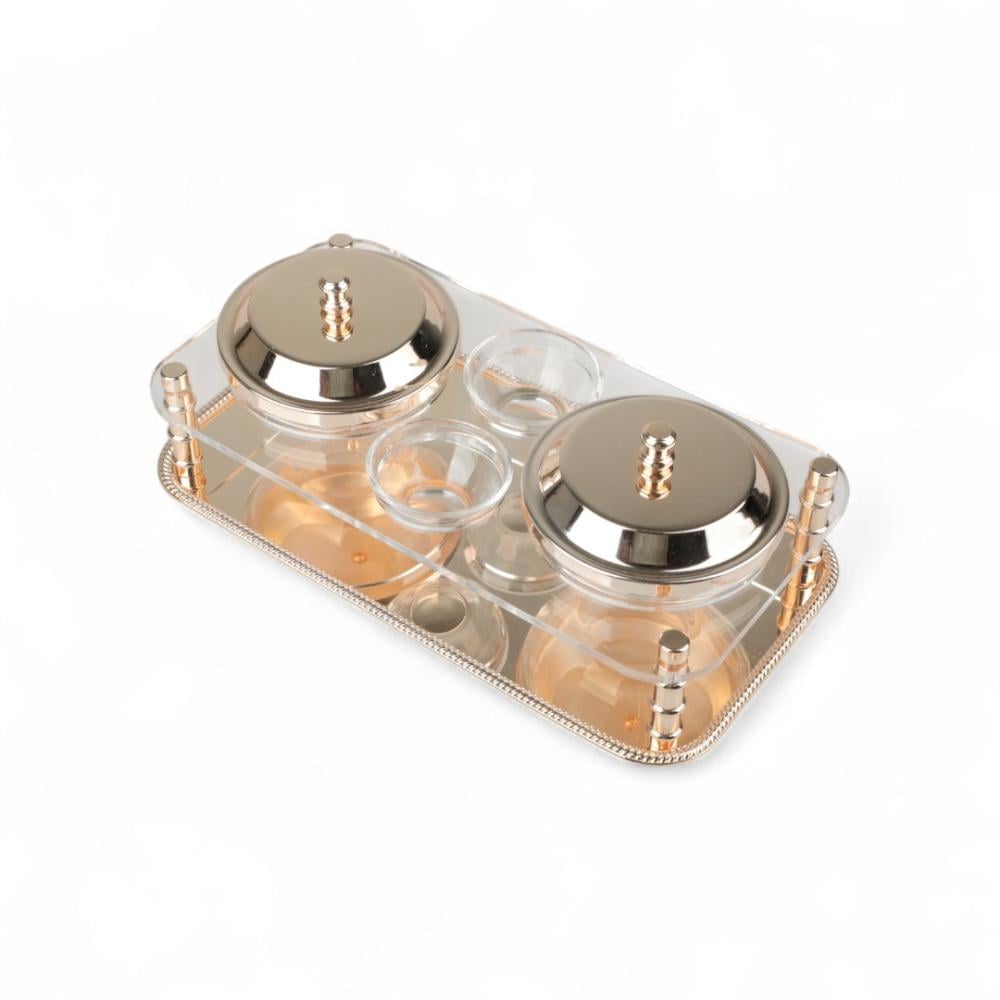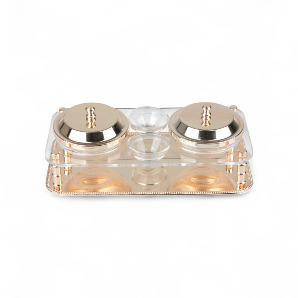- يحتوي الطقم على 4 أوعية مع حامل و أغطية بلون ذهبي