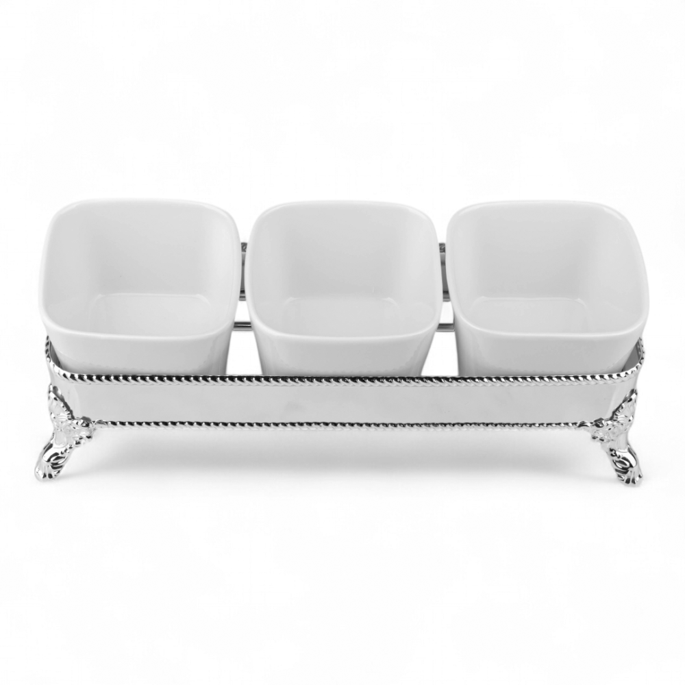 طقم ضيافة ميار من سوليتير, لون فضي وأبيض, مكون من 3 صحون وحامل