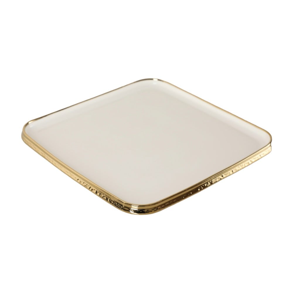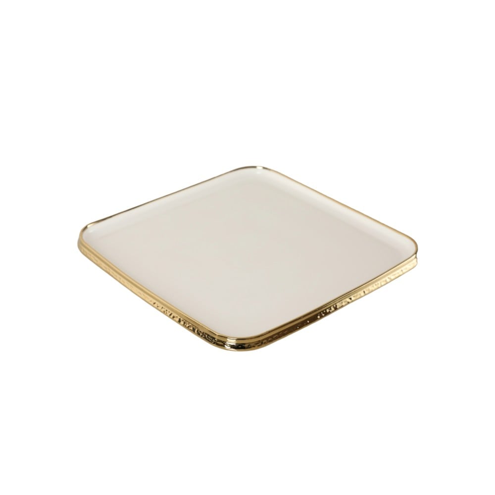الطقم المصنوع من بورسلان عالي الجودة باللون اللؤلؤي ذو الأطراف الذهبية الأنيقة , امنحي طاولتك المزيد من الفخامة.