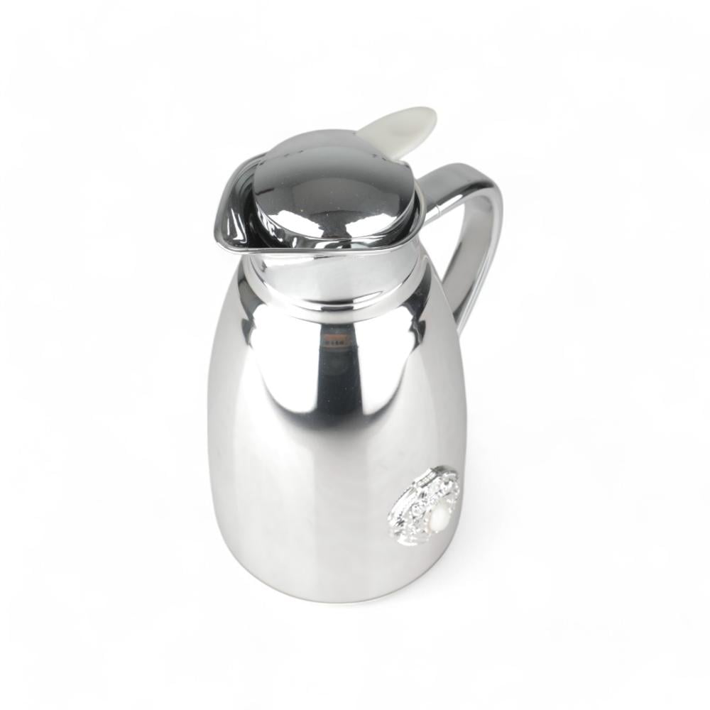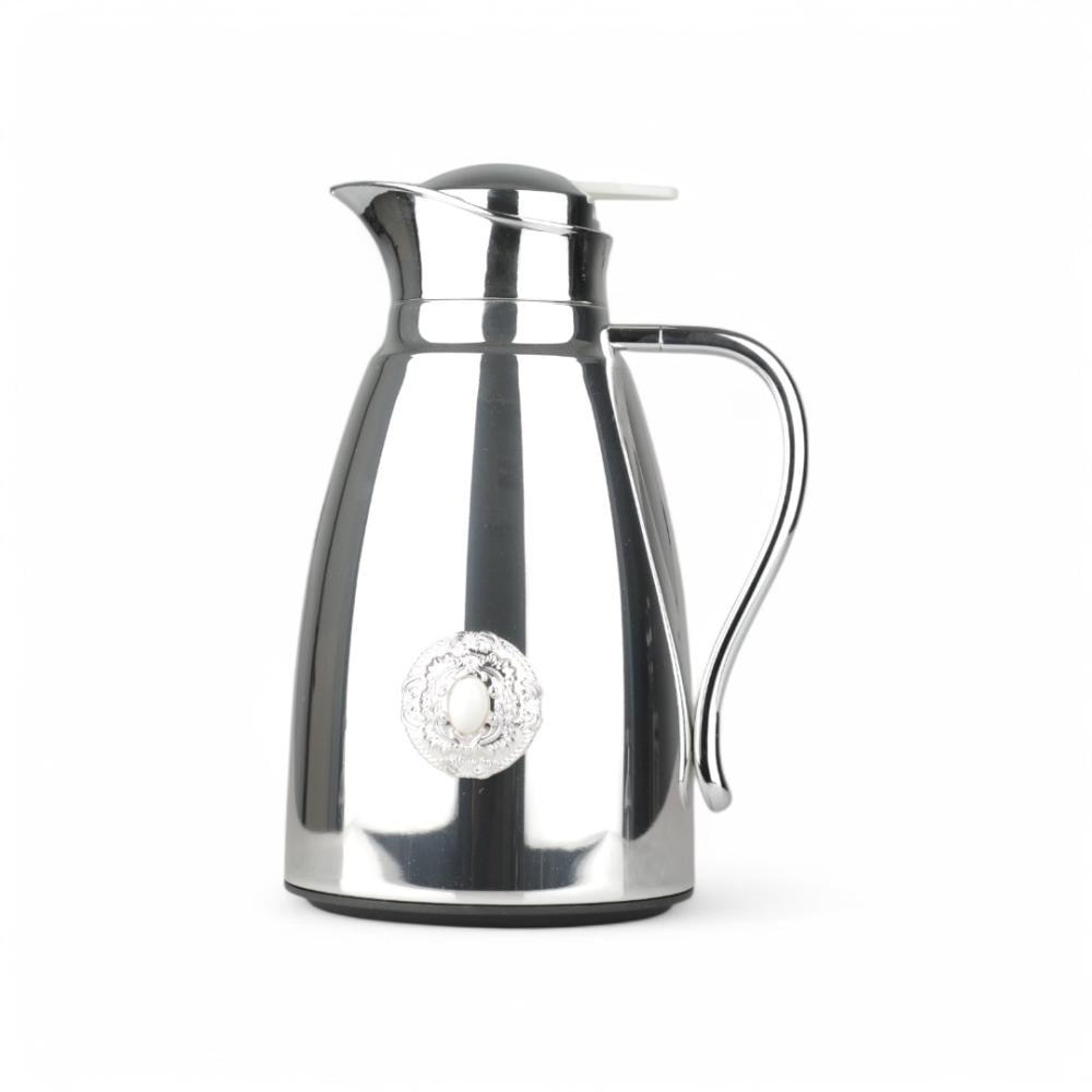 ترمس كوين من سولتير 1 لتر ، اللون فضي & بحجر أبيض