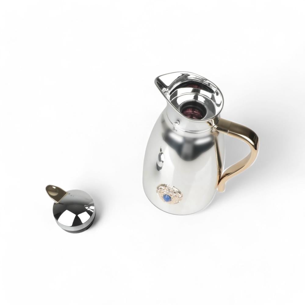ترمس كوين من سولتير 1 لتر ، اللون فضي ذهبي & بحجر أزرق